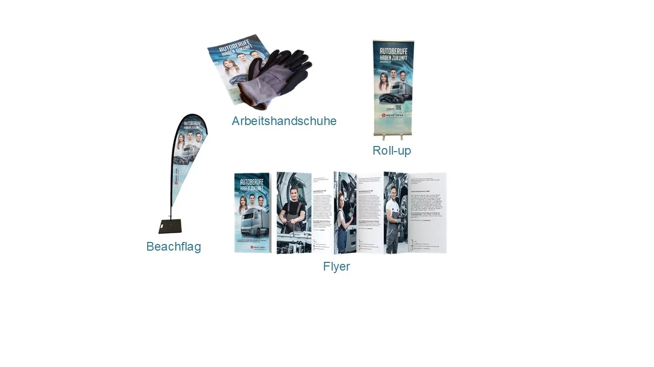 Ob Tag der offenen Tür, Firmenjubiläum oder Frühlingsausstellung – jede Gelegenheit zählt, um Autoberufe erlebbar zu machen! Unser Werbematerial eignet sich auch perfekt für Ihre Veranstaltungen, um die Faszination unserer Branche zu zeigen und potenzielle Nachwuchstalente direkt anzusprechen. Nutzen Sie die Möglichkeit, Begeisterung zu wecken – wir liefern Ihnen das passende Material dazu!