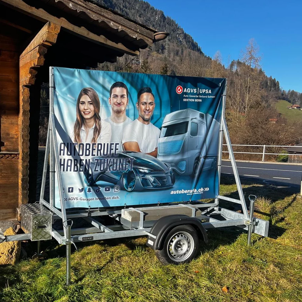 Die Anhänger können als Werbeträger auf einem Parkplatz vor der Garage oder bei Bedarf für Ausstellungen, Events oder Ähnliches gemietet werden. Für Mietanfragen können Sie sich gerne beim Präsidenten Ihrer Untersektion oder bei der Administration in Bern (für Berner Garagisten) melden. Als Mietdauer empfehlen wir mindestens zwei Wochen.