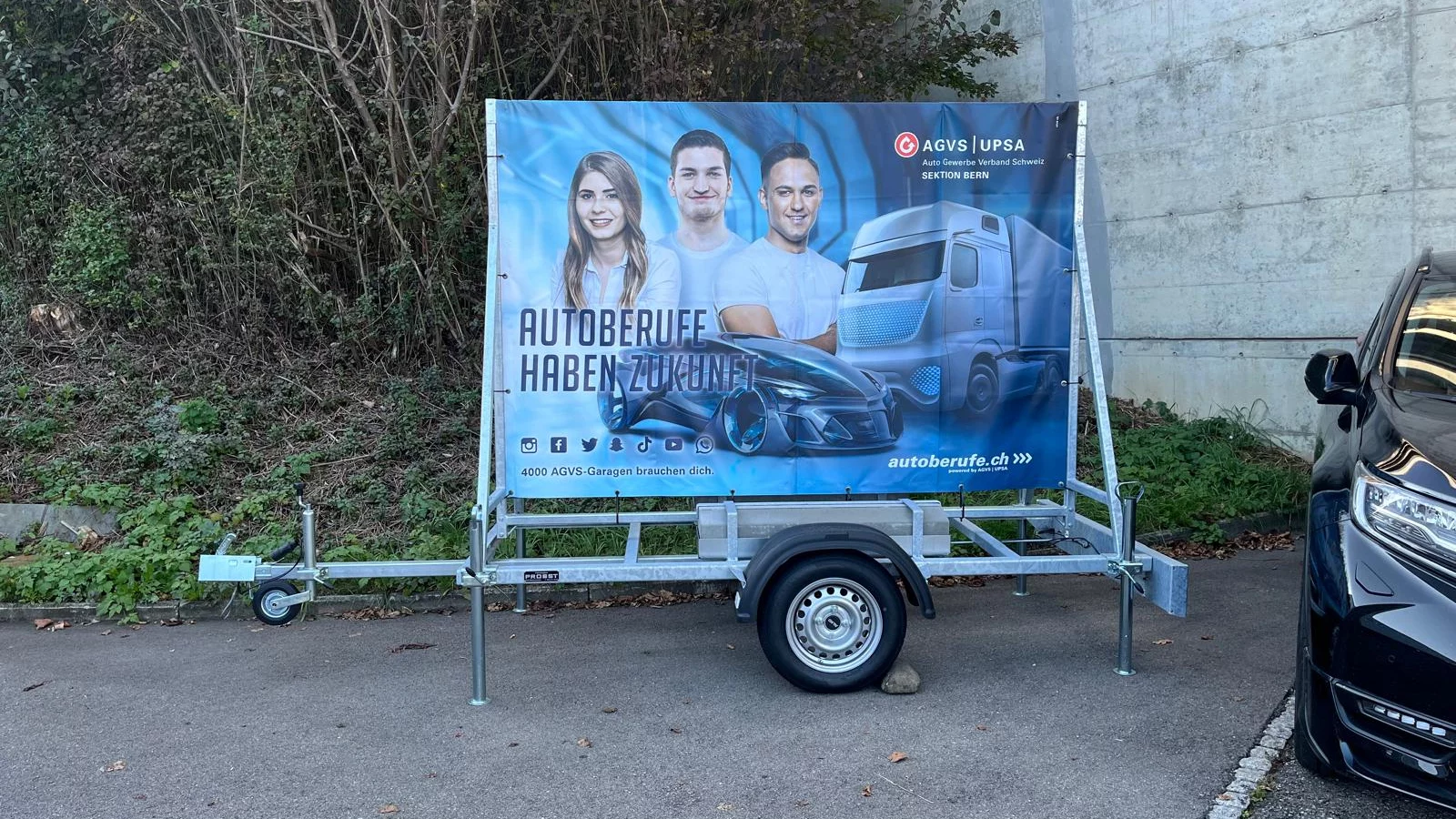 Die Anhänger können als Werbeträger auf einem Parkplatz vor der Garage oder bei Bedarf für Ausstellungen, Events oder Ähnliches gemietet werden. Für Mietanfragen können Sie sich gerne beim Präsidenten Ihrer Untersektion (für Berner Garagisten) melden. Als Mietdauer empfehlen wir mindestens zwei Wochen.