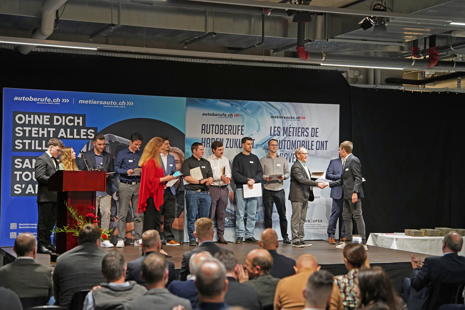 Grosser Bahnhof respektive grosse Garage für 149 Absolventinnen und Absolventen aus dem Autogewerbe: In Langenthal BE nahmen Automobil-Werkstattkoordinatorinnen und -koordinatoren, Automobildiagnostikerinnen und Automobildiagnostikern mit Fachrichtung Personenwagen und Nutzfahrzeuge ihre Fachausweise entgegen – darunter auch neun Frauen.